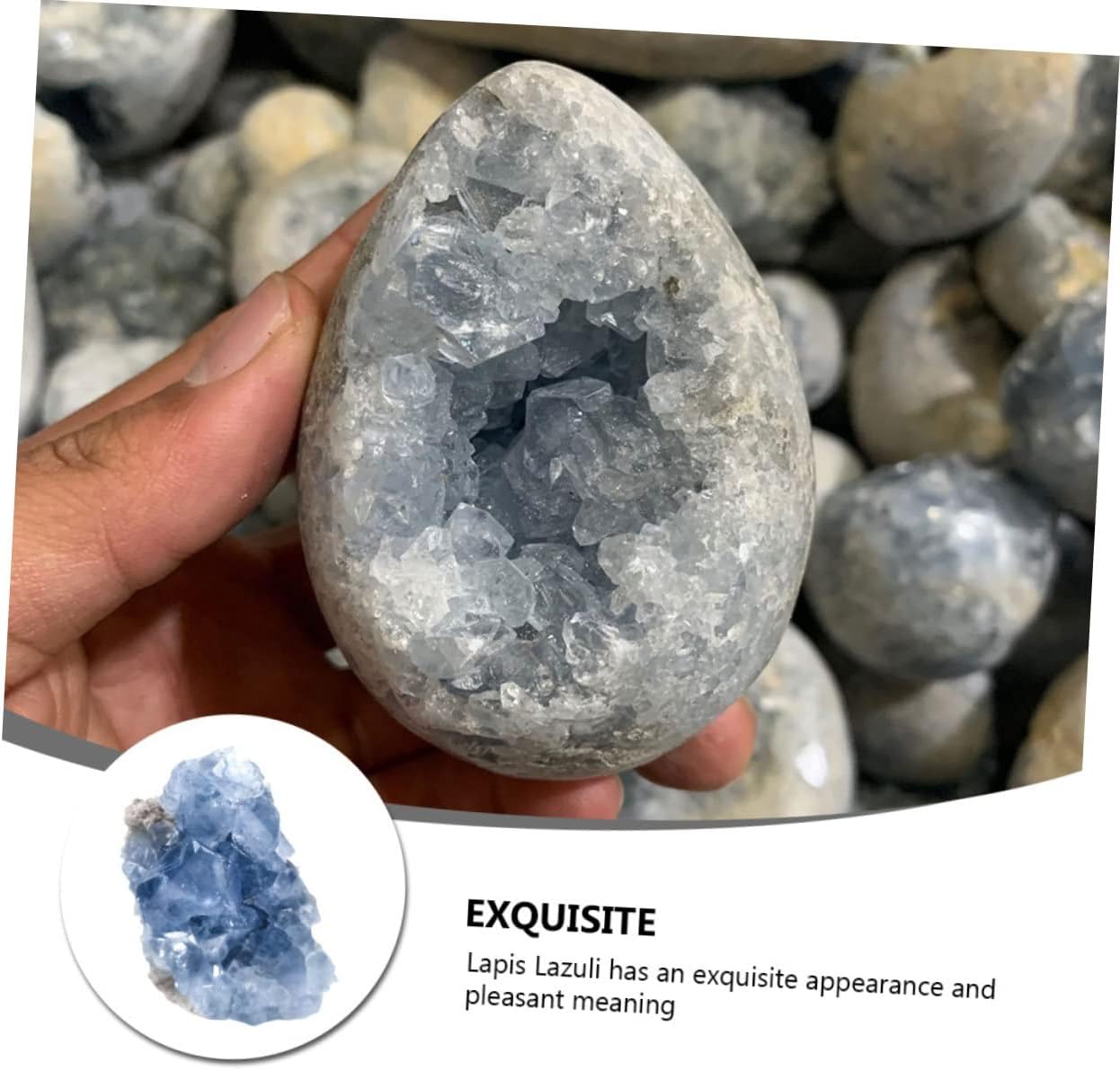 Package List 1 x Celestite (500g) Characteristics -Material: Celestite Decorative Celestite. -Color: Sky-blue Natural Ore Stones - Size: 7.00X7.00X6.00cm/2.75X2.75X2.36in Tabletop Decor -Note:It exists some color difference from the picture shown Natural Gemstones. -It is an excellent material for geological research, research, jewelry making, etc Natural Crystal Desktop Ornament. -The lapis has fine texture and beautiful luster, which can play a very good decorative effect Tabletop Adornment. -The noble and elegant sky blue appearance and the unique charm of the rough make it easy to win people's love Beautiful Celestite. -You can decorate it as a small decoration in a fish tank or potted plants Desktop Adornment. -The appearance and beautiful colors make it jewelry making and collection Home Decor.Goods InformationHome Decor This is a lapis jewelry with appearance and excellent texture.Desktop Adornment You can give it as a to friends who like to collect gems, and they will be very happy.Geology Specimens For those who are obsessed with minerals, the elegant and fresh lapis is strong in texture, beautiful and , and is a .Decorative Celestite Not only can it be used for collection and display, it is also an excellent DIY jewelry material