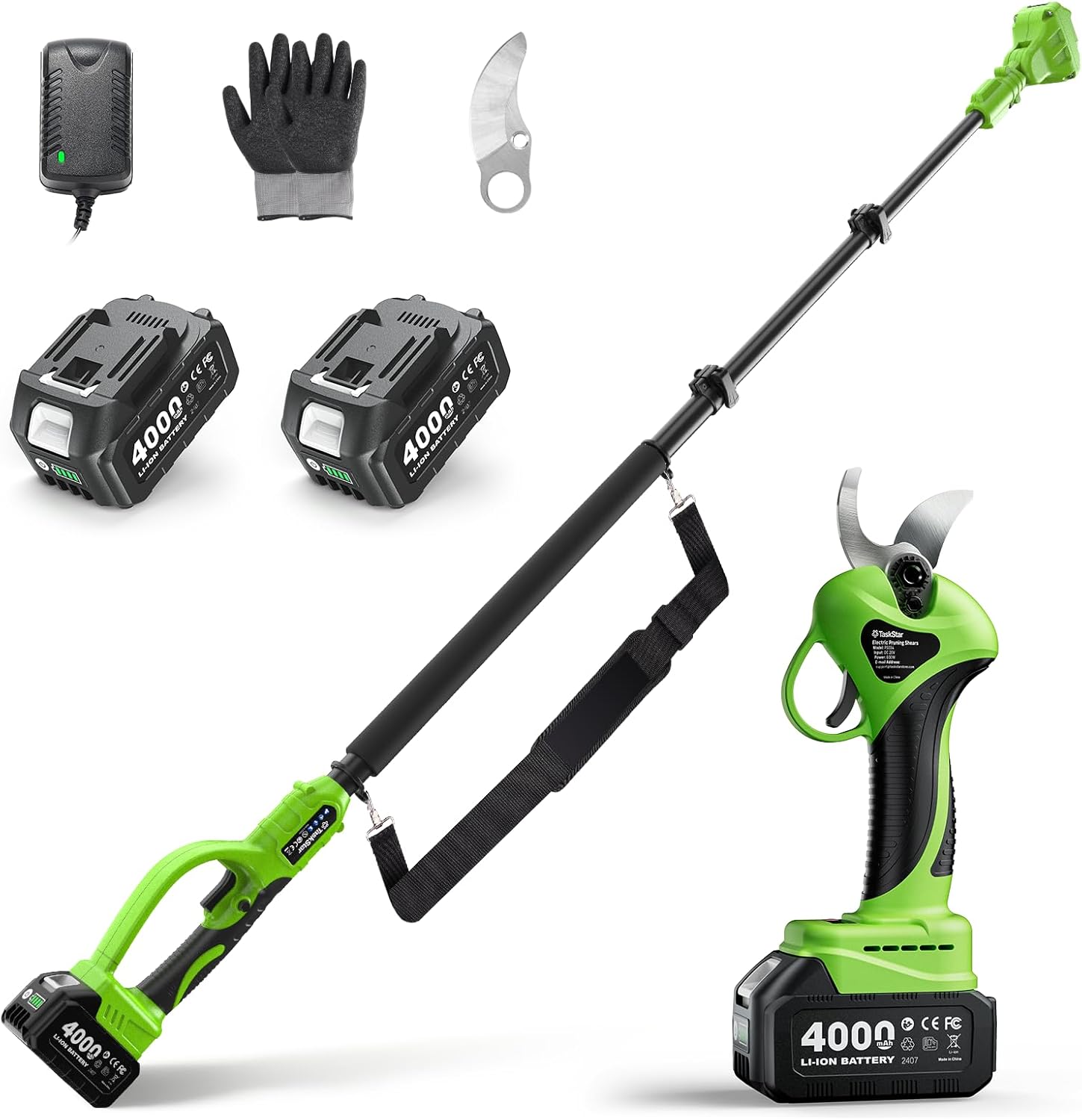 TaskStar 2-in-1 Electric Pruning Shears Cordless: 1.6" Cutting Diameter Brushless Pole Pruner+TaskStar Electric Pruning Shears Cordless with Pole