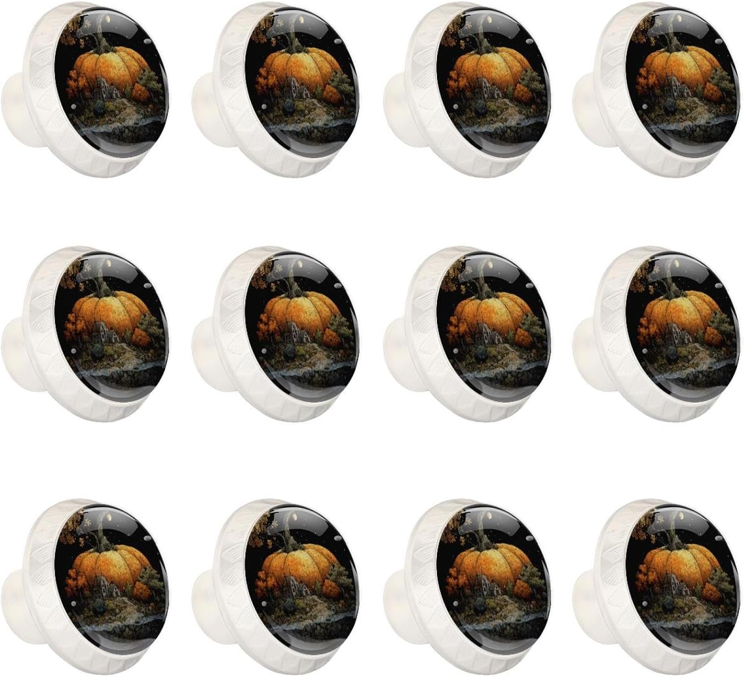 Black Base Pumpkin Fall Printed Drawer Pulls, Durable Cabinet Knobs for Wooden Cabinets & Drawers