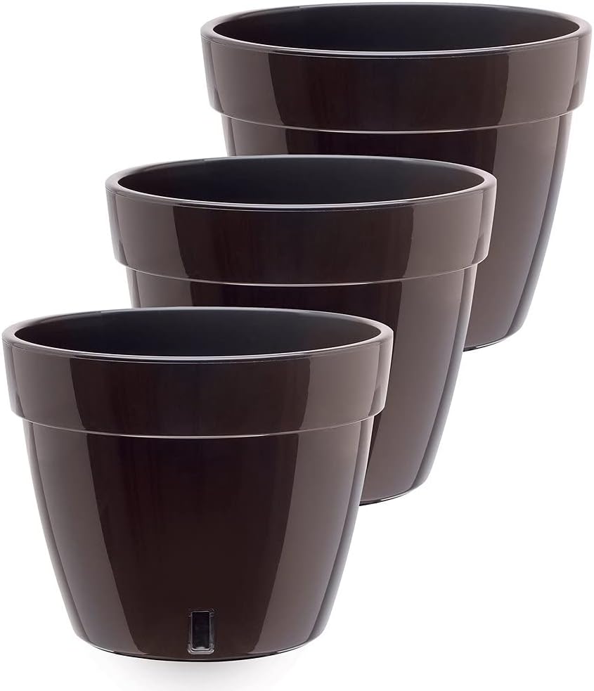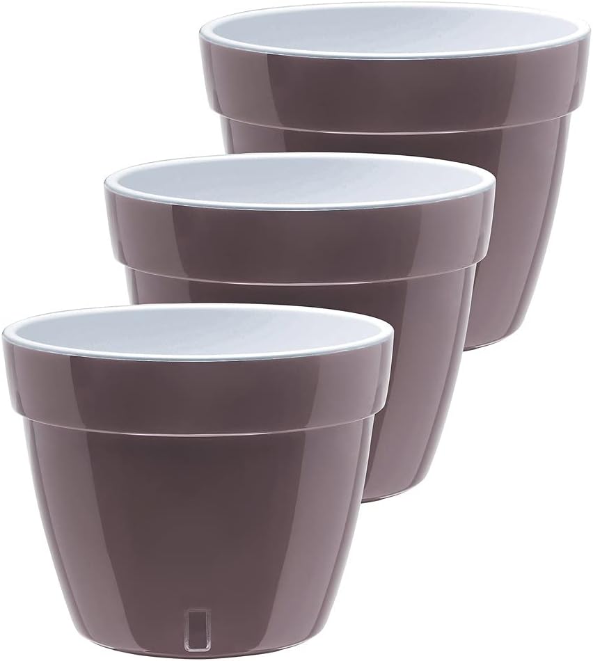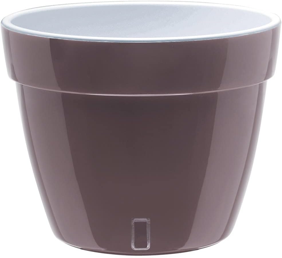 Asti Self-Watering Planter 10.6 inch Dimensions: Capacity 2.4 Gal - Height 8.3 inch - Diameter 10.6 inch - Bottom Diameter 7.0 inch - Water Reservoir 27 OZ. Material: Durable Plastic, UV stabilized. Note: Please note that No Plants or Gravel included with this item. Made of plastic, Gardenera pots are strong, durable and reusable, year after year. All self-watering planters include a large built-in reservoir which draws water to the roots for up to 4 weeks and prevents them from rotting by allowing an easy oxygen circulation. Santino pots are great for an outdoor garden, balcony, indoor decoration, greening projects etc. HOW TO USE: 1. Before planting the plant, it is recommended to pour a layer of gravel (2-3cm/1inch) for ideal moisture balance. You can also use perlite or specific mixtures of these materials. 2. Pour the first layer of soil, which it shouldn't be much since you need to leave enough space for the root ball. Instead of soil, different types of peat mixtures can be used, suitable for your plant. 3. Place the plant directly into the flowerpot and fill the remaining space with soil. Slightly compress. Add a little bit more soil, because it will settle within 2-3 weeks by 5-10 Percent . 4. Water your plant directly into the soil. Make sure that the water level does not exceed the level of gravel. Use the clear window to check the water level. LOVE YOUR PLANTS. GROW IN STYLE. THE WATERING IS ON US - DO IT GARDENERA WAY! Click Add to cart button to become a part of the self-watering community.