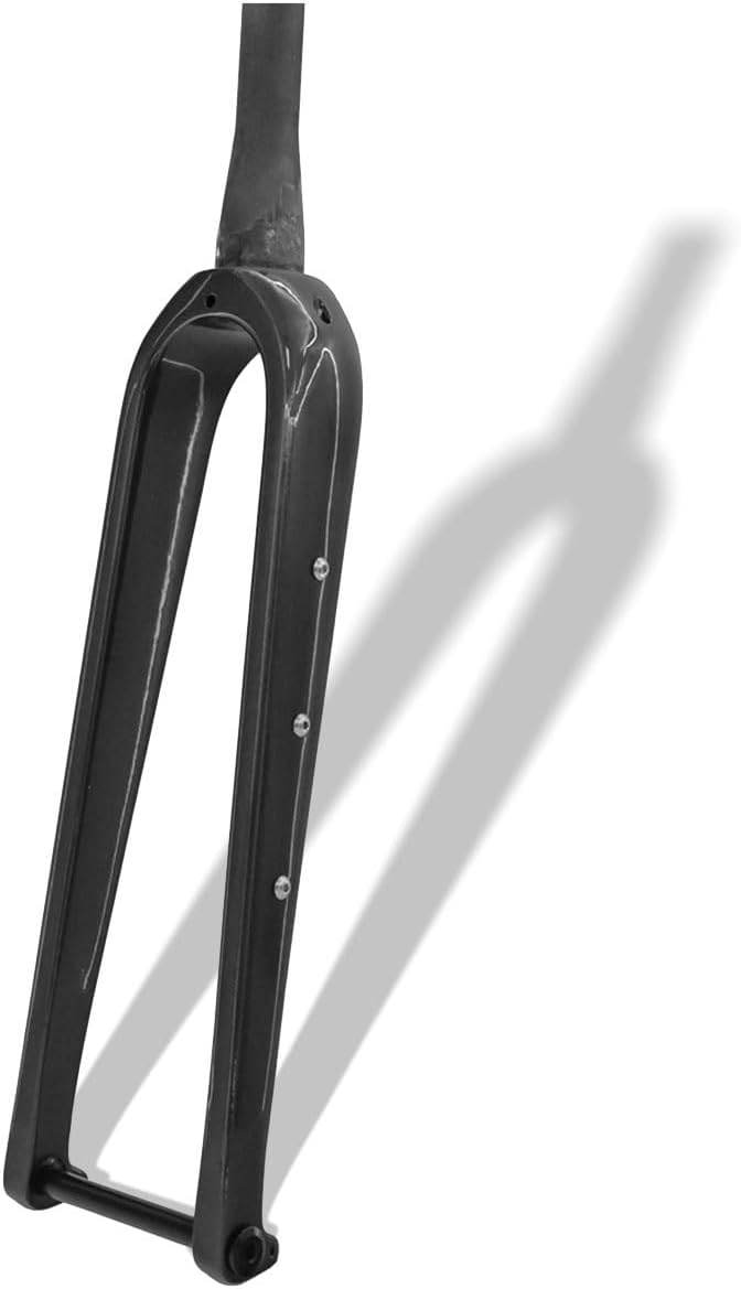 Carbon Fiber Road Cyclocross Bikes Rigid Fork 700C Gravel bikes Disc Brake Hard Fork 12*100mm Thru Axle Front Fork 1-1/8 Straight/1-1/2" Tapered Gravel Bikes Rigid Fork Information:Color: Matte black , Gloss blackSize: 700CMaterial: T800 carbon fiberSteerer tube type: 1 1/8" straight/1-1/2" TaperedSteer Tube Diameter: 28.6mmBottom File: 30/39.8mmSteerer tube lenth: 300mmThru Axle: 12*100mmFork width: 100mmApplicable tires: Support max 700C*45C/27.5*2.1" tiresBrake: Flat mount disc brake (Brake Column Hole Spacing 75mm)Offset: 50mmScope of application: Road cyclocross bike/gravel BikesWeight: About 460±20gPackage:Rigid Fork x 1; Thru Axle rod x 1.Note:1. Please allow slight dimensional tolerances due to manual measurements, lighting in photography may cause color differences from real life.2. Please check the size details in our list carefully according to the actual condition of your Bikes to make sure you buy the fit fork.3. Due to different production batches, there may be slight differences in the color, appearance, shape, and details of individual parts. If you have any questions, please feel free to contact us, thank you!