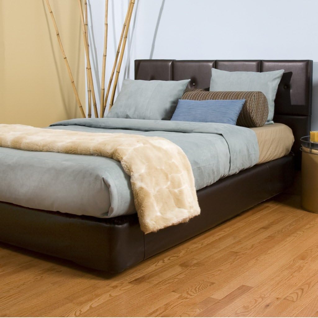 Headboard kit includes 8 piece upholstered tile headboard. Made of wood, foam and polyester. Upholstery fabric is a soft burlap in topaz. Simple installation. Has a tufted upholstered look. Headboard measures 32-inch by 64-inch by 1-inch. Assembly required. This product ships in one box.