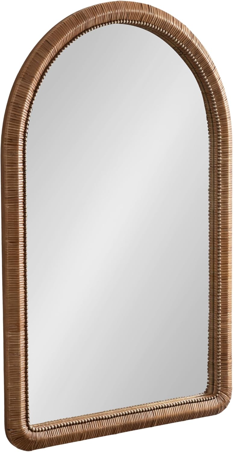 Create a bohemian aesthetic in your home with this fantastic and unique Rahfy mirror. This beautiful mirror is the epitome of boho design, featuring a rectangular, textured look on the frame that pops off the wall. The beautifully wrapped frame is made from premium, high-quality rattan with a dark natural wood finish and a unique beaded interior edge. The rounded rectangle shape emphasizes its unique look with a dash of modernity to showcase a geometric and trendy style on any wall. Embrace the natural look and feel of this mirror as it provides an endearing boho accent to your home decor aesthetic. The Rahfy mirror is 24 inches wide by 36 inches tall with a 2-inch frame border, giving it a great dimensionality that pops off the wall. Hang this stunning piece of wall decor in your bedroom, entryway, dining room, living room, or even bathroom with its trendy boho design. Hang the beautiful Rahfy wall mirror in a matter of minutes with the convenient D-ring hangers attached to the back of the frame.
