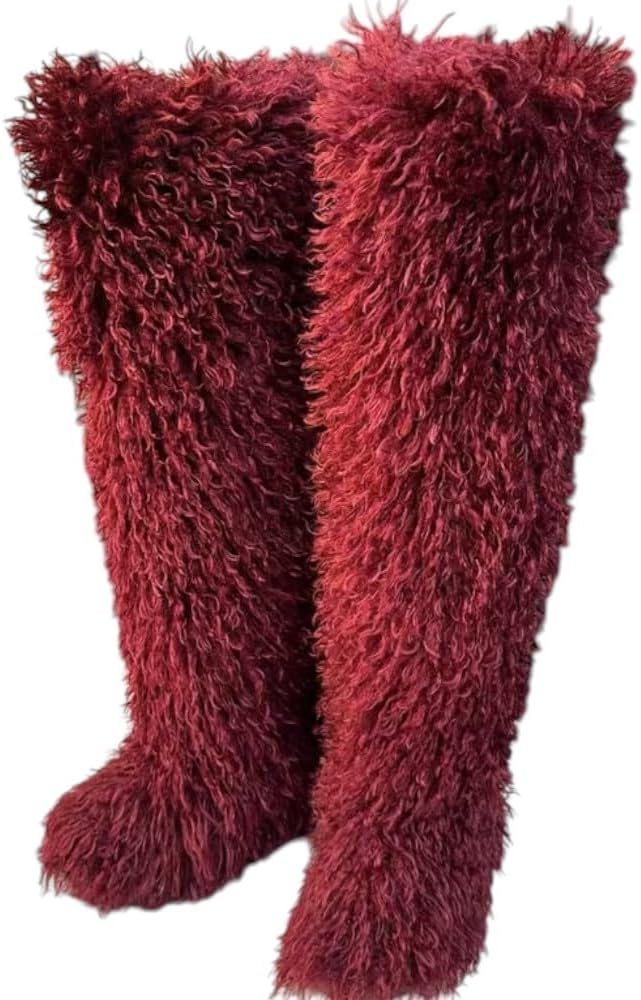 Women Fuzzy Boots Thigh High Fur Boot ,Over the Knee Fluffy High Boots Tall Furry Shoes Knee-High Winter Warm Long Boots