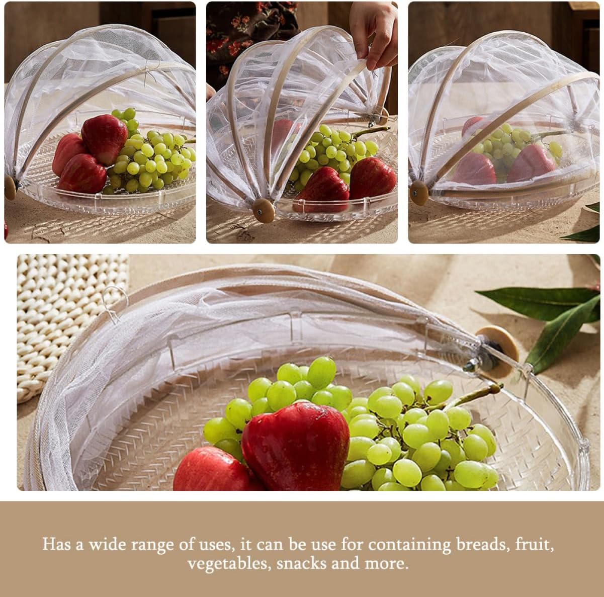 Package List 1 x storage basket Features -Size:29.50X29.50X22.00cm/11.59X11.59X8.65in bread cover storage basket -Material: glass, mesh and food tents -Color:As Shown screen covers -Gauze mesh cover, protecting your food and fruits , and keep food clean and fresh in summer mesh covers. - for personal home or restaurant use, also for bakery shop, very and outdoor drying storage baskets. -Multi-function storage basket, it will add more beauty to your space drying basket. - workmanship, smooth to guard your hand against hurting, giving no harden jagged edges, reinforced and sturdy picnic cover mesh. -This drying basket with food cover is a choice for your family and friends serving mesh basket.Goods Descriptionfood tents for outdoor serving This drying basket with net covet can keep it ventilated and visible and store food safely, for any indoor and outdoor, such as garden barbecues, picnics, camping trips and pool parties, etc.bread baskets for serving Can be used as a housewarming to your friends