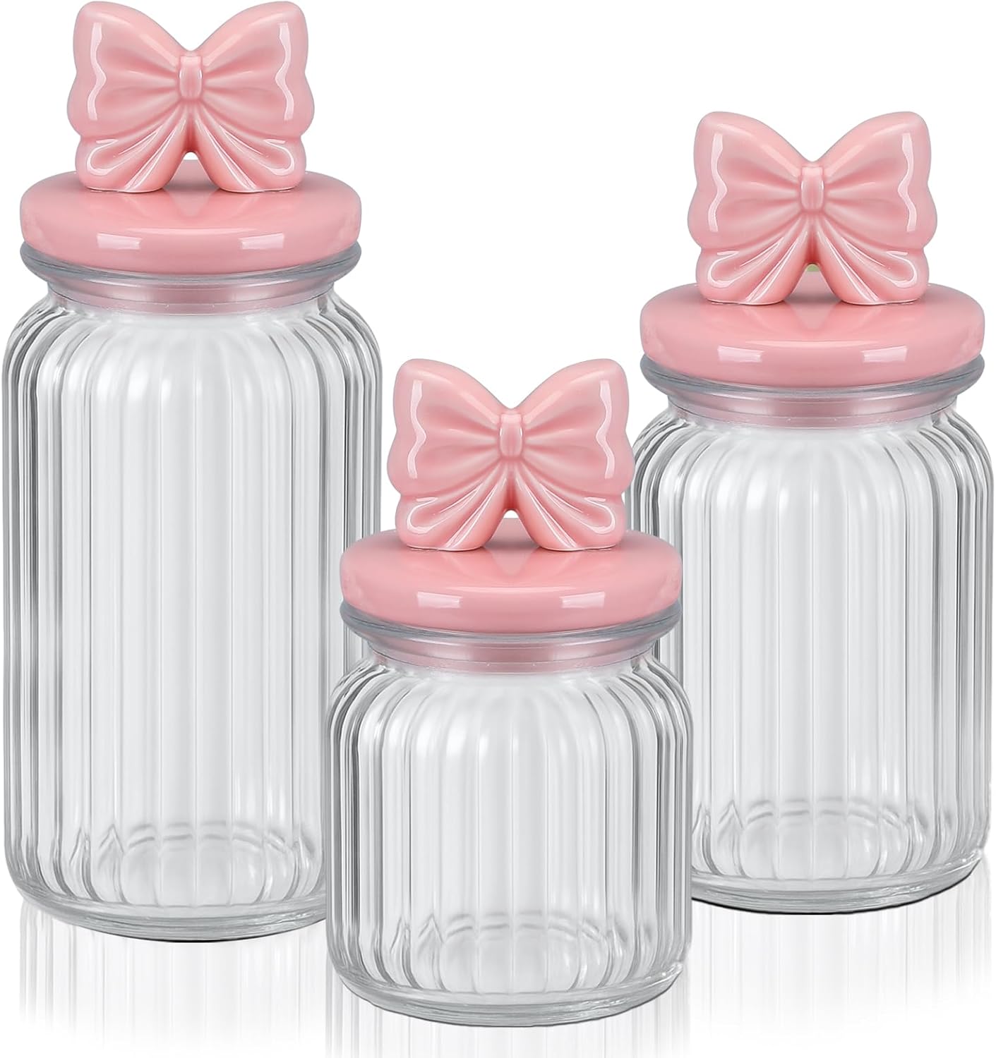 Feature: Multiple sizes: You will receive 3 sizes of Easter candy jars, all with a diameter of 4.33 inches, the sizes are: large height 7.28 inches, capacity 44 ounces. Medium height 5.71 inches, capacity 33 ounces. Small height 4.13 inches, capacity 22 ounces. Suitable for storing different small items, keep your kitchen tidy and organized Easy to clean: Both the Easter bunny candy bowl and lids are dishwasher safe, making post-holiday candy cleanup quick and easy, so you can reuse them for other seasonal activities. Basic information: Quantity: 3 Material: glass, ceramic, rubber Color: clear and gold Size: Large: 4.33 inches in diameter, 7.28 inches in height, capacity 44 ounces Medium: 4.33 inches in diameter, 5.71 inches in height, capacity 33 ounces Small: 4.33 inches in diameter, 4.13 inches in height, capacity 22 oz Package include: 3 x Easter glass jar Notes: Manual measurement, there may be slight differences in size. Due to the screen display, the color of the item may differ slightly from the picture