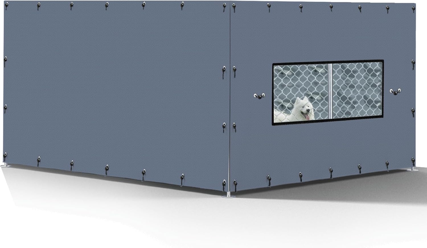 A replacement kennel cover designed specifically for 10 foot X 10 foot kennels, easy to install and remove, and made of heavy-duty 600D Oxford cloth that is waterproof, snow resistant, and UV resistant, protecting your dog from freely playing inside the kennel house