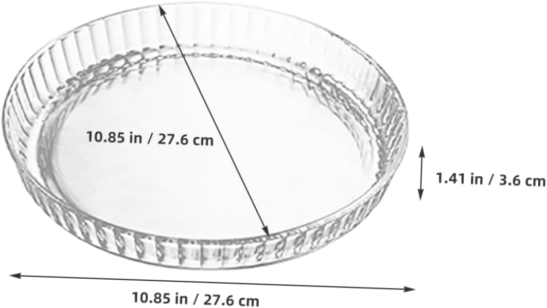 Package List 1 x glass plate Characteristics -Color:Transparent round baking dishes for oven -Size:27.60X27.60X3.60cm/10.85X10.85X1.41in glass baking dishes for oven -Material:Glass baking plate glass - and convenient to use, not easy to break or deform, reusable and can be applied for longtime round glass baking dish. - Fine workmanship, smooth polishing, bright color, and creative, suitable for storing all kinds of food bakeware glass. - Versatile, convenient and , suitable for both home and restaurant, very simple to use. pizza baking pan - Perfect for pumpkin pie, chicken pot pie, lasagna, roasting vegetables, cheese cake, pot roast, etc baking pan. - This baking dish with simple style, and can be used in the oven, microwave, freezer and dishwasher glass dish.Goods Informationglass pans for cooking This item is a professional baking plate, made from glass material which is easy to clean and .baking pan It features high temperature resistance, healthy and .round glass baking dish You can use it to bake some cakes and breads for your families and friends