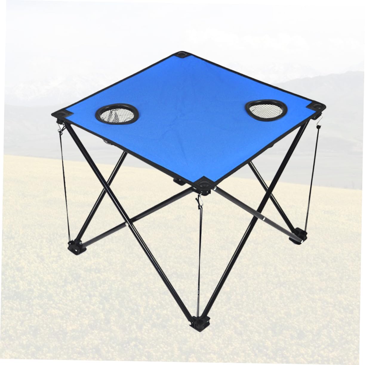Package Include 1 x camping table Features - Color: Blue camping tables. - Size: About 45 x 45 x 37cm foldable table beach. - Material: Metal, oxford cloth and plastic folding camp table small. - The table legs are made of metal and the oxford cloth table with cups holder, which is , can resist strong stress together even if the table is in a steep land travel table camping. - Extremely easily and up and fold down. Suitable both for outdoor and indoor using collapsible outdoor table. - It can be rolled up can take it in your bag easily table portable camping. - Installing in minutes with no tools required. It is a necessity for camping, picnic, traveling tall camping table. - A great furniture for outdoor activity like BBQ, beach party and so on collapsible camping table.Goods Descriptionfolding tables for outdoors The solid metal table legs makes it durable, able to hold a variety of goods.picnic tables for outdoors It is a necessity for camping, picnic, traveling.portable table with cup holder Made of material, the table is light and solid, easy to carry.adjustable camping table It is easy to clean and suitable both for outdoor and indoor using