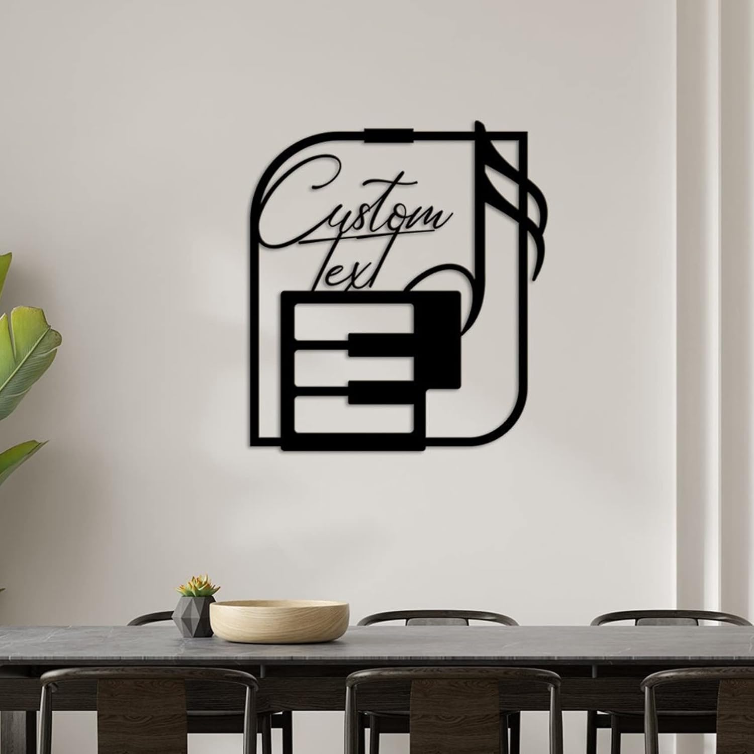 Our music metal wall art and decor - a unique gift for musicians, music teachers, or anyone who loves music! Made from high-quality metal, making it the perfect addition to any living room, entryway, or bedroom. Each piece is carefully crafted and designed to showcase the beauty and elegance of music notes. It's a perfect way to add a personal touch to your home or office, and also makes a thoughtful and unique gift for any music lover. Our music metal wall art and decor is easy to install and comes with everything you need to hang it on your wall. It's also durable and long-lasting, ensuring that it will be a cherished piece for years to come. We offer this option with ready-made text, size, and color. If you prefer a custom text, please check out our other variations on this page.