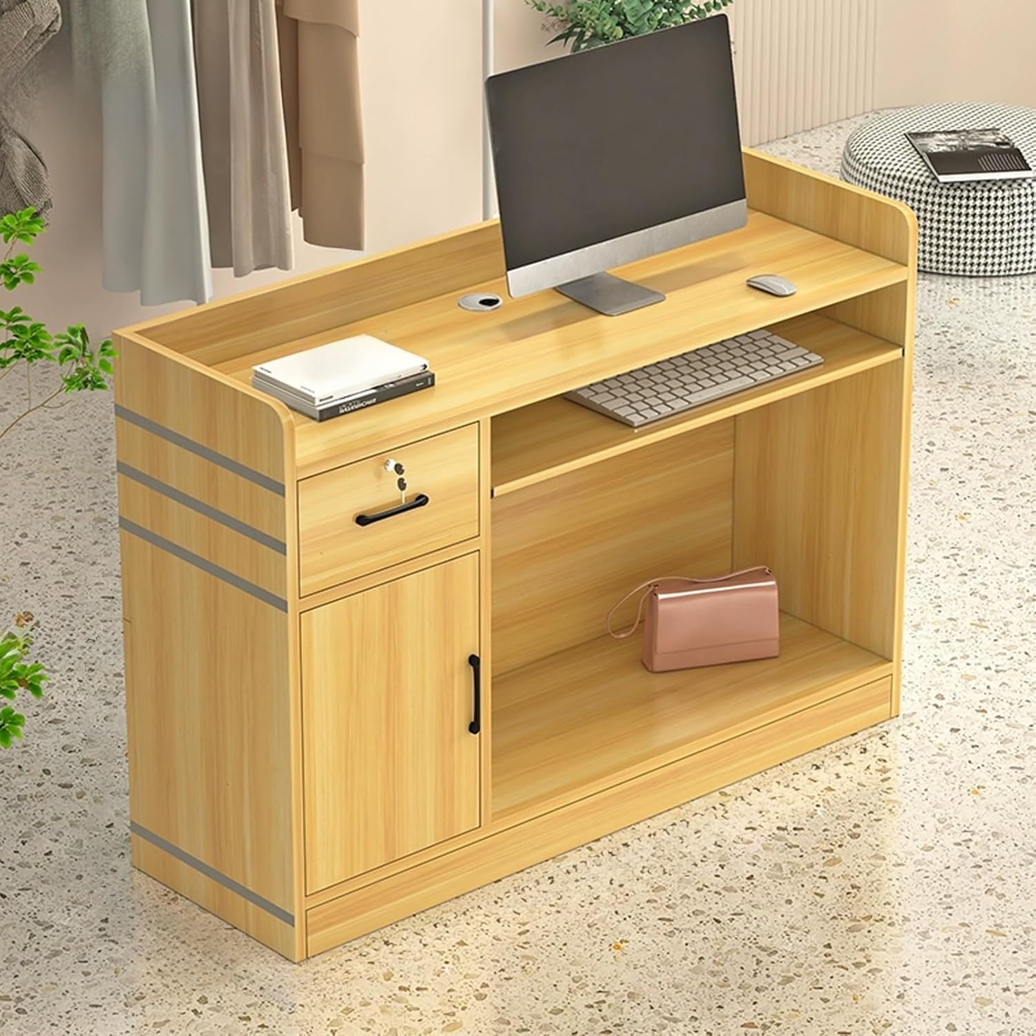 Transform your reception area with our sleek and modern YUGXTH reception desk counterFront counter desk the large and spacious countertop can be used for processes such as checkout, registration or consultation. It has enough space for computers, cash registers and even promotional materials to meet all your daily operation needs.Specifications:Product name: Small reception deskMaterial: WoodColor: White , Yellow , Light brown , Black , BrownStyle: Modern and simpleLength: 60cm/23.6in, 80cm/31.5in, 100cm/39.3in, 120cm/47.2inWidth: 42cm/16.5inHeight: 92cm/36.2inApplicable scenarios: Clothing stores, beauty salons, etc.Package Includes:1 x Cashier Counter.Attention.1. Due to monitor differences, there may be slight color difference.2. Due to the measurement method, measurement method and other factors, there may be a slight error.