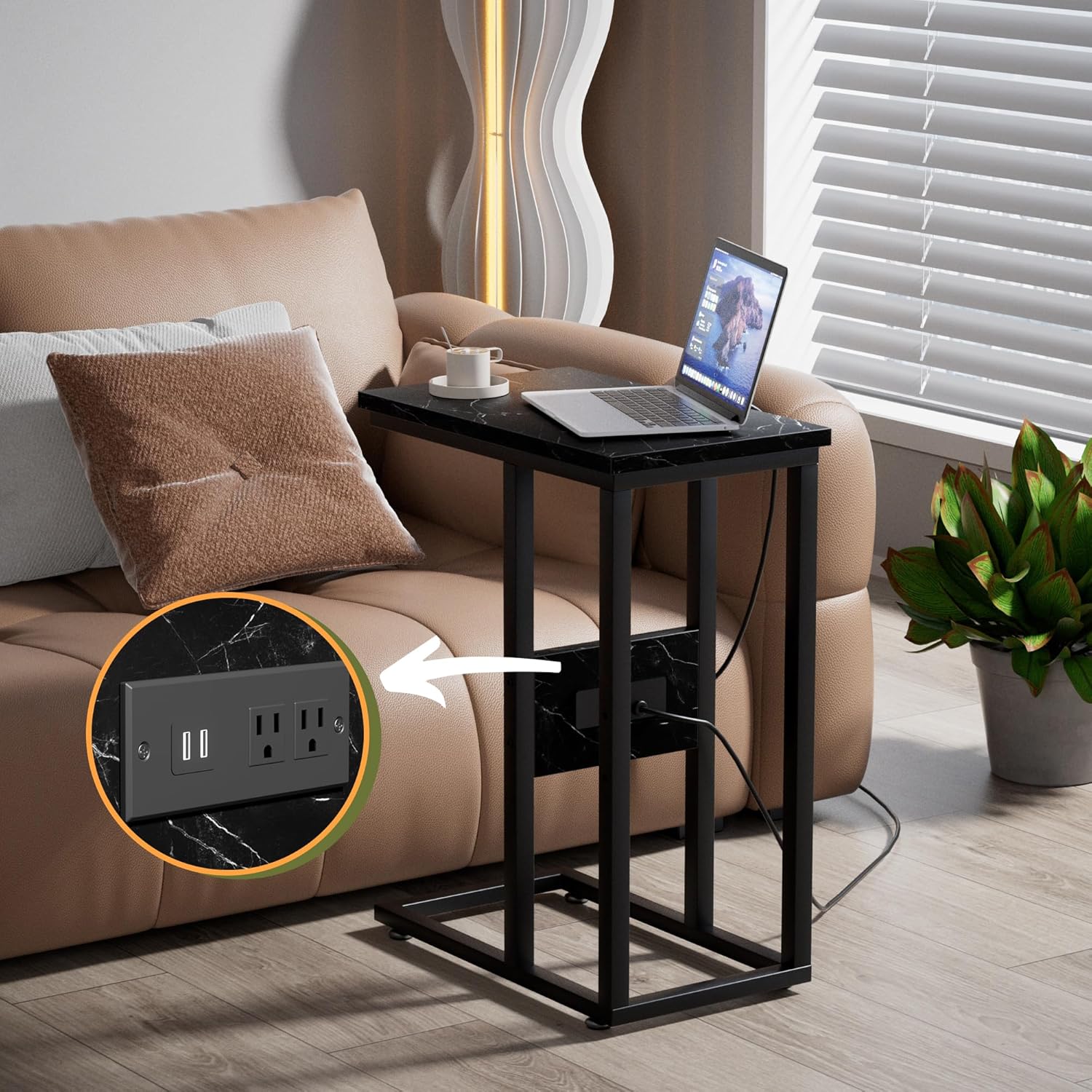 | Model Name | VECELO C Shaped End Table with Charging Station & Power Outlets |