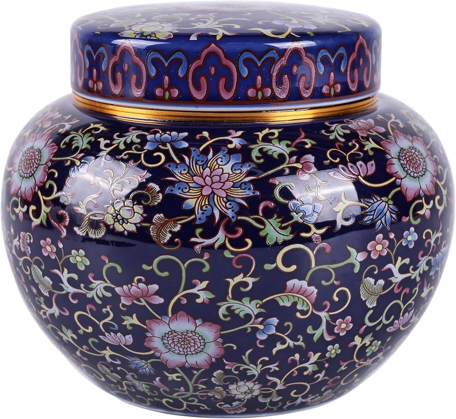 1.Distinctive Chinoiserie Design: This round enamel ginger jar features a beautiful and intricate Chinoiserie design, drawing inspiration from classic Chinese porcelain artistry. 2.Versatile Color Options: Available in a selection of three vibrant colors - blue, yellow, and red - to suit your home decor preferences and add a burst of color to any space as decorative jars. 3.Convenient Twist Lid: The jar comes with a twist lid, offering easy access and secure seal to preserve the contents, making it a practical yet stylish addition to your home. 4.Compact & Sturdy: With a size of 4.92x4.92x4.33" and a weight of 1.72 lbs, this ginger jar possesses a perfect balance of compactness for easy placement and sturdiness for long-lasting use. 5.Multifunctional Chinese Jar: This enamel ginger jar is not only a unique decorative piece, but it also serves as a functional storage container - perfect for storing tea, spices, or small trinkets.