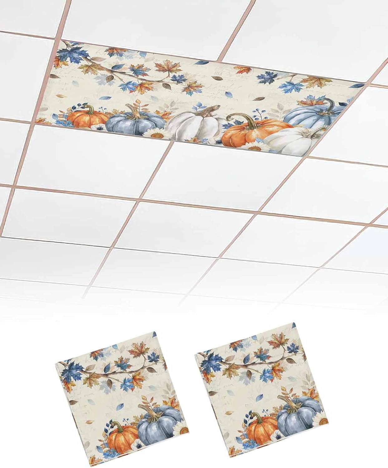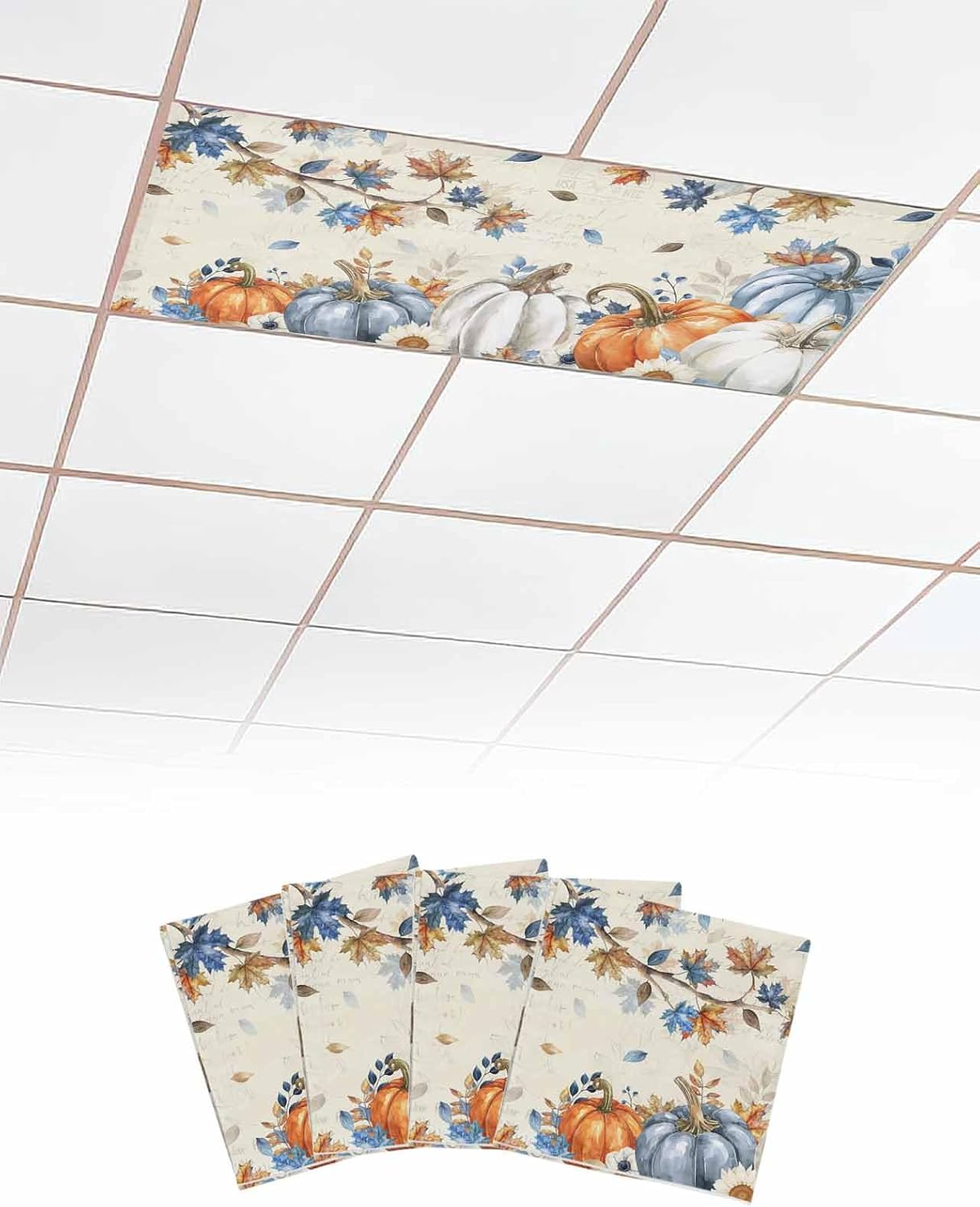 Fall Thanksgiving Fluorescent Light Covers to Enlighten Your Living Space & Make Your Space InspiringProduct DescriptionMaterial: oxford fabric with magnetsSize: 4 x 2 feet (122x61cm)Package:Pack of 1/2/3/43 Easy Steps to Install1. Select and unfold a magnet light cover2. Using a step-ladder climb to the desired light3. Attach the sewn-in magnets on the outside of the ceiling grid, covering the light.Exquisite WorkmanshipThe fluorescent lamp shade is made of high-quality Oxford cloth, which is reusable and very environmentally friendly. The pattern printing is clear and the visual effect is good.Easy CleanWaterproof fabrics, wipe them by wet rag. Or just machine wash in cold water, avoid bleaching. This ensures that you can enjoy using our light cover without having to worry about a complicated cleaning process.Create a Peace EnvironmentThe fluorescent ceiling light cover for ceiling lights can effectively weaken the light, alleviate the temporary dizziness caused by lighting, which can reduce the eyes' discomfort, creating a peace and ease environment.Versatile Ceiling LightsFrom classrooms to medical facilities, our ceiling light replacement cover shines in various settings. Whether you're in a school, hospital, or dentist's office, these fluorescent light covers promote a better working environment. The exquisite design adds more beauty to your ceiling. Vibrant HD PatternOur magnetic light filters come in a variety of vibrant colors and patterns for each season and occasion. Give your space a real personality, the perfect gift for daily and various holidays.