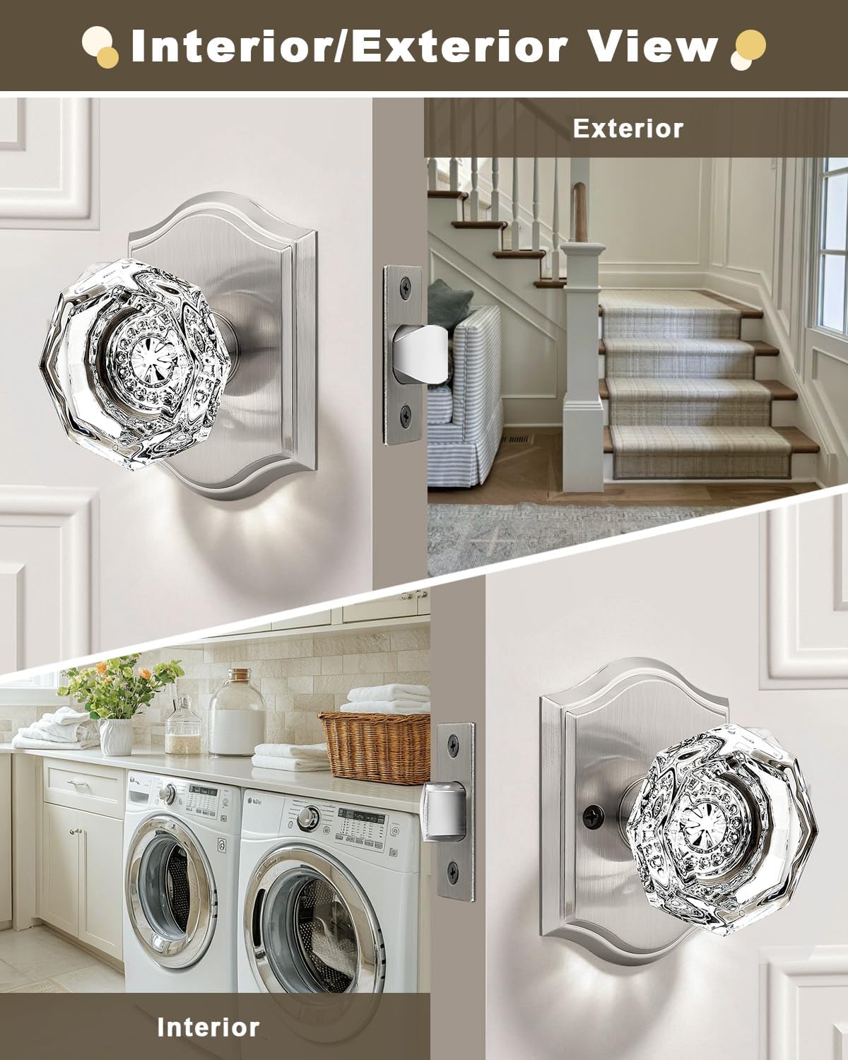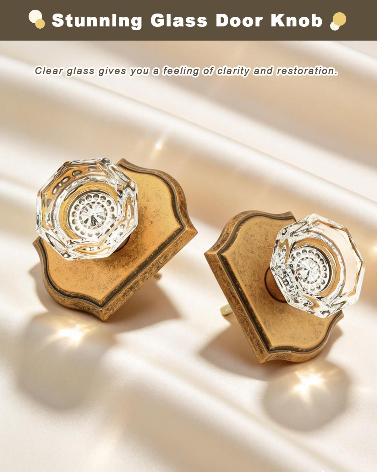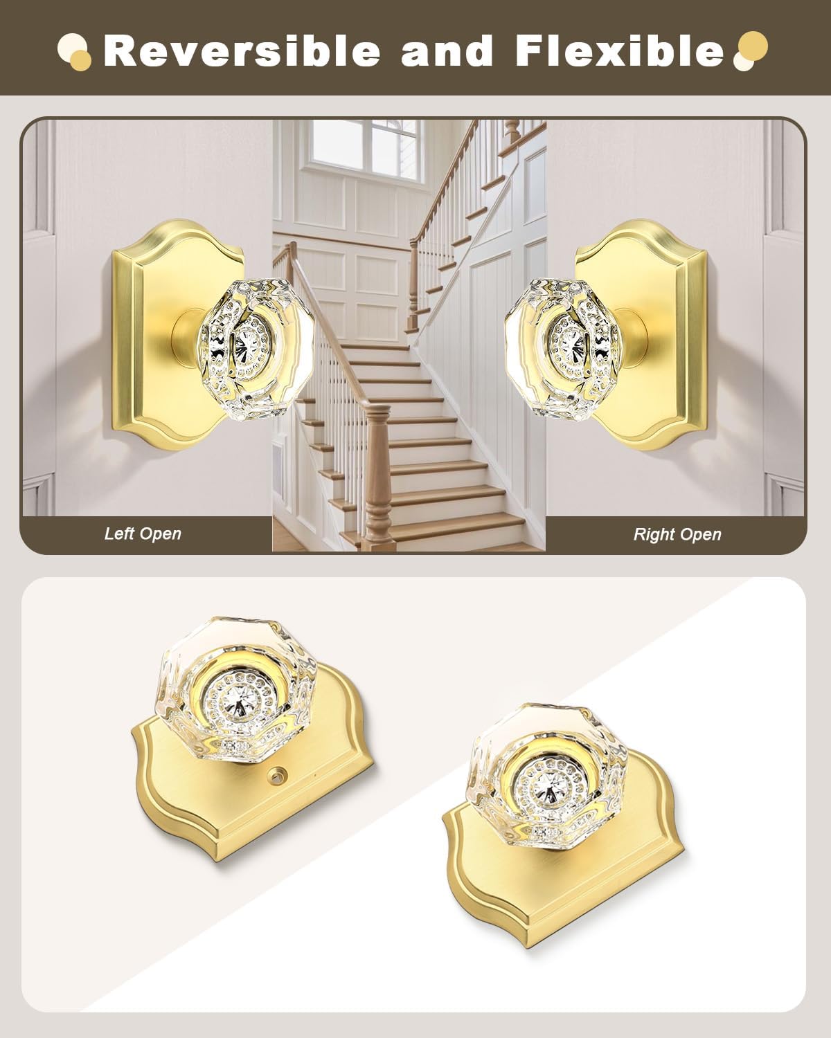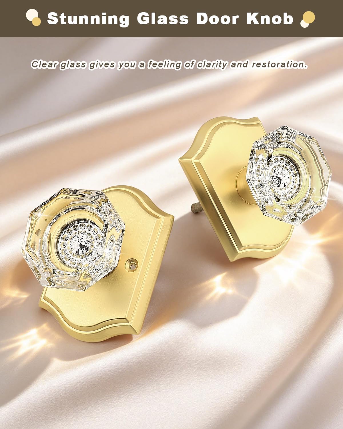 | Included Components | Crystal glass knobs(interior & exterior knob),adjustable latches with undetachable plate,spindles,plastic covers,strike plates,hex keys,screws,installing insructions |